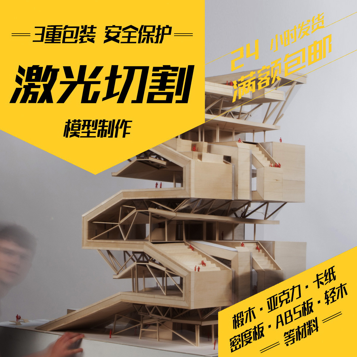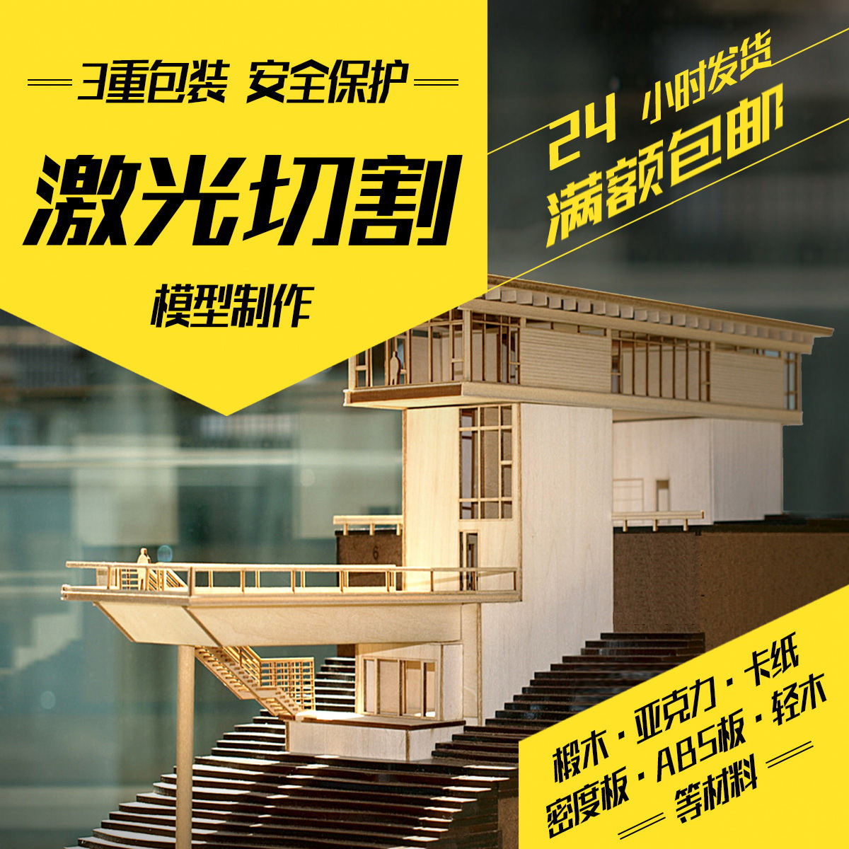 激光切割建筑模型加工木板图纸雕刻船模椴木板亚克力卡纸定制制作