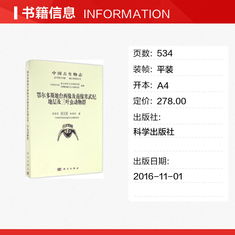 袁金良 鄂尔多斯地台西缘及南缘寒武纪地层及三叶虫动物群 张文堂 朱兆玲 著作 中国古生物志新乙种第36号 著 总号靠前99册