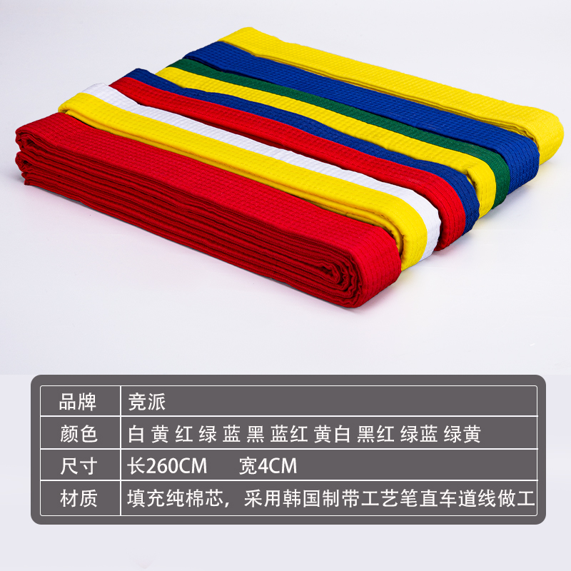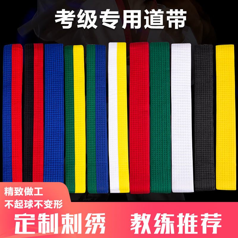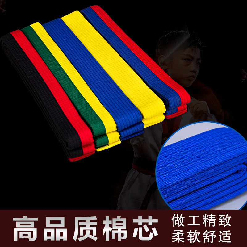 跆拳道道带纯棉腰带儿童成人考级腰带白黄绿蓝红黑带双色彩色腰带