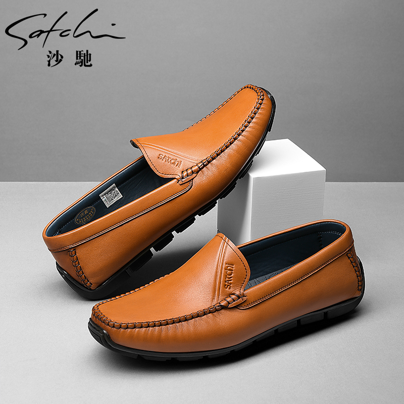 头层牛皮一脚蹬厚底商务休闲中老年爸爸男鞋 老人头皮鞋 男真皮秋季