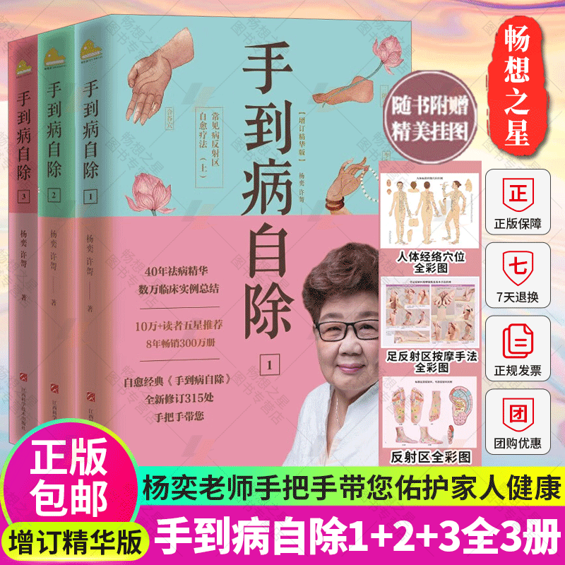 杨奕 手到病自除 全三册 123全套图解按摩教程书籍养生全集 中医养生按摩推拿健康百科全书 赠挂图 足底按摩教学书 2022版