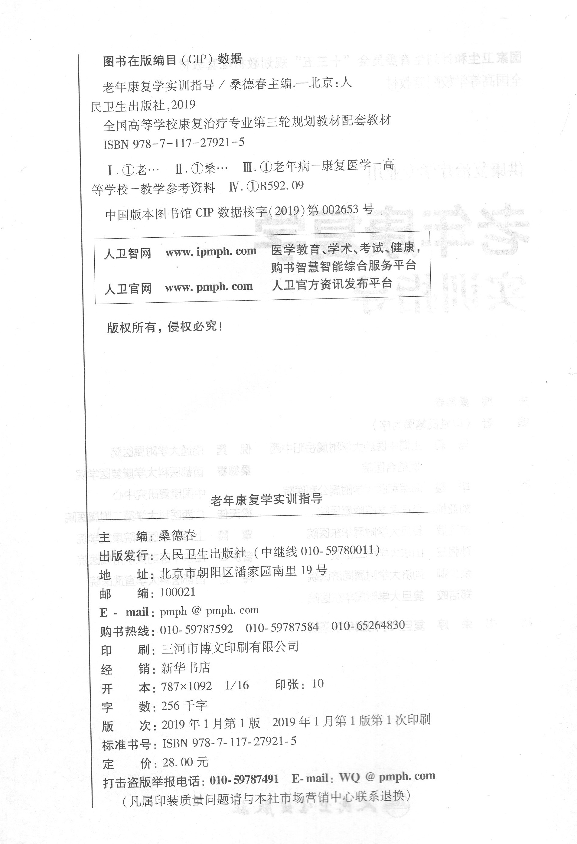 供康复治疗学专业用 老年康复学实训指导 全国高等学校卫生和计划生育委员会 十三五 桑德春 正版 规划配套教材 现货