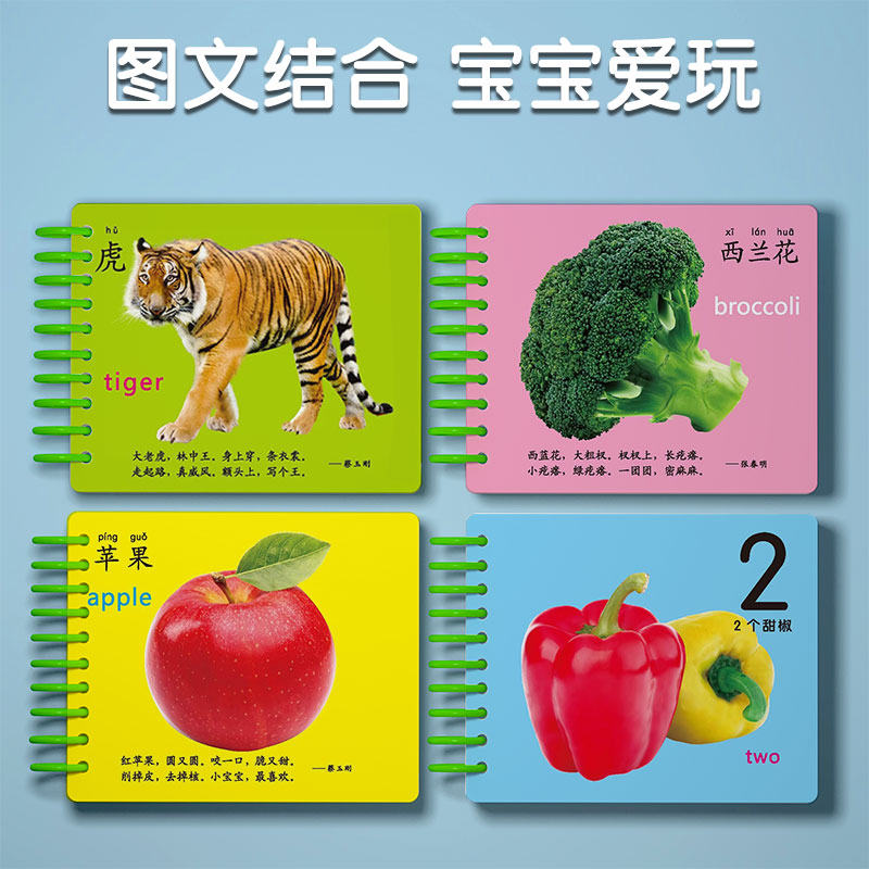 3岁婴幼儿宝宝书籍两岁认识动物颜色数字识字人物形状交通工具水果蔬菜 撕不烂启蒙认知早教书翻翻书益智玩具大卡片婴儿绘本0