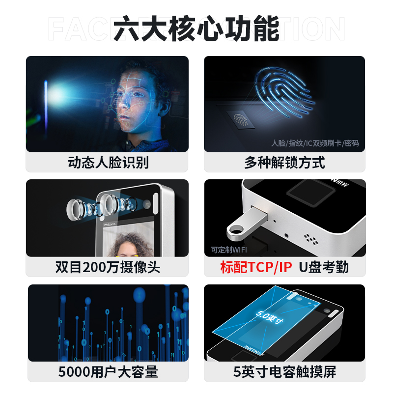 ZUCON动态人脸识别考勤门禁系统一体机指纹刷脸电磁电控锁磁力锁