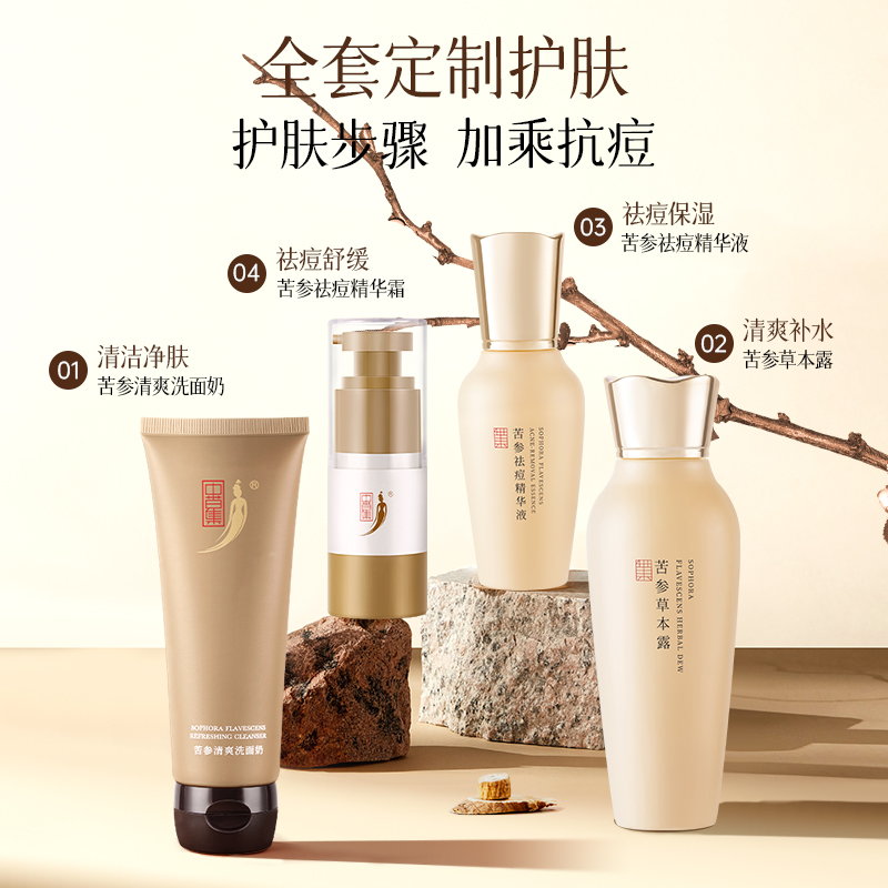 中草苦参祛痘组合套装 护肤品 草本祛痘清爽洁面清凉舒适补水保湿