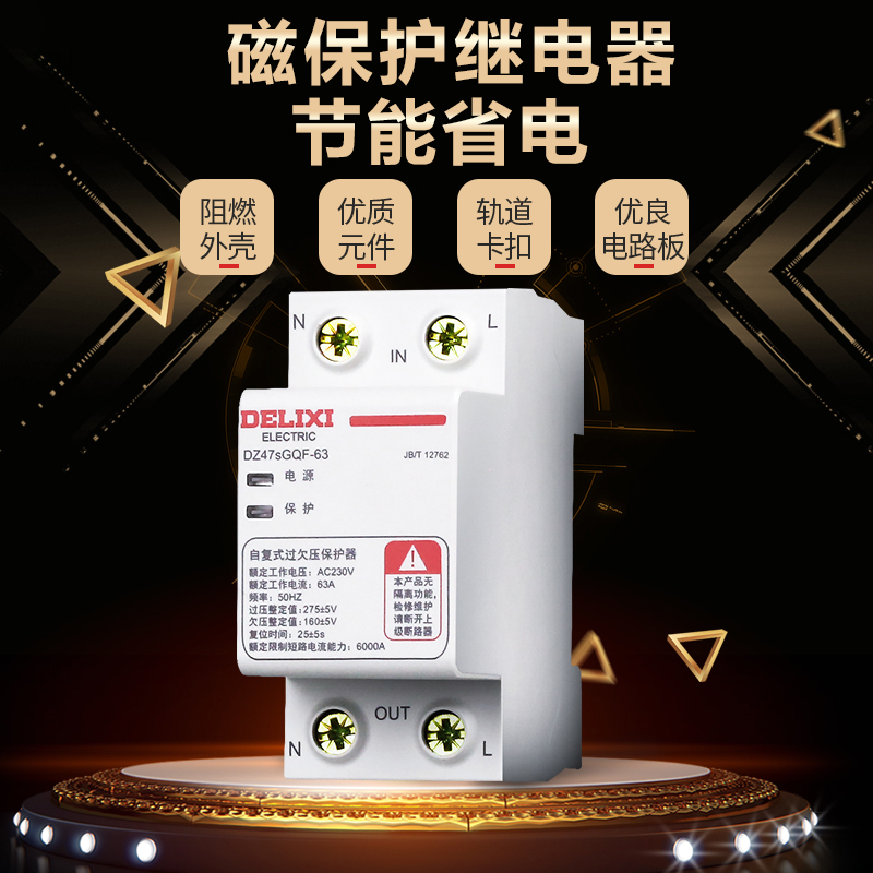 德力西过欠压保护器自复式 家用过电压自动复位延时220V电源40A63A
