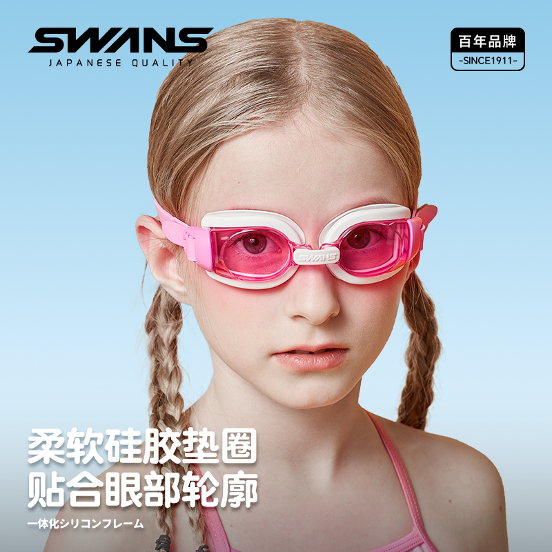 swans儿童泳镜近视男童防水防雾高清游泳镜女童专业游泳眼镜装 备