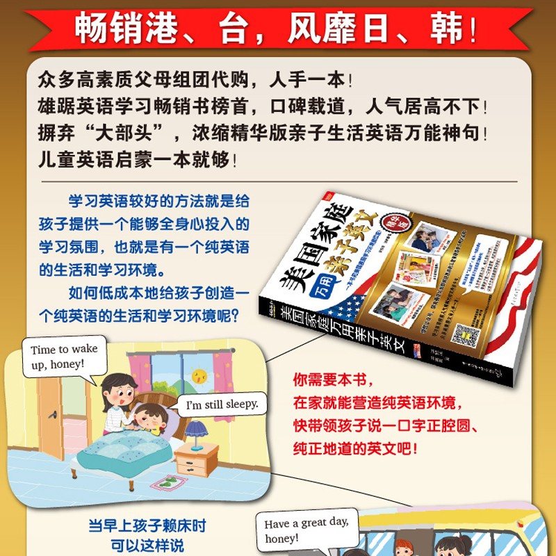 小学生儿童英语读物教程教材少儿英语启蒙教材 美国家庭万用亲子英文 听音频 家庭入门童早教英语会话学习书籍亲子英文早教 扫码