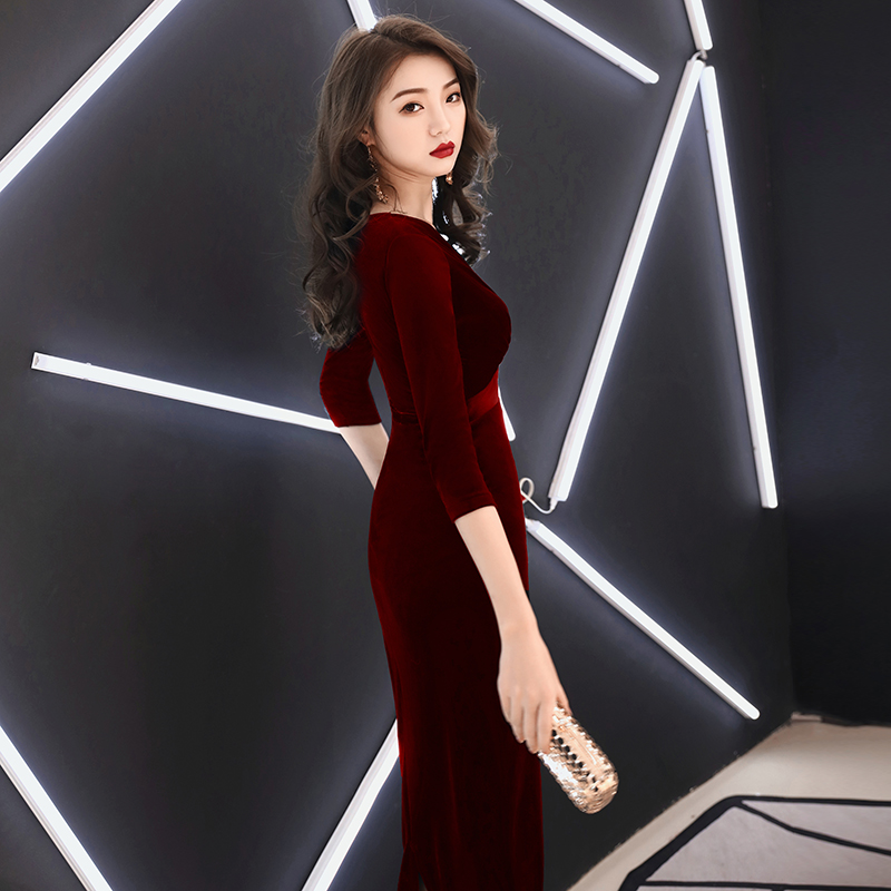 晚礼服女气质丝绒高端宴会婚礼妈妈装 年轻订婚敬酒服喜婆婆连衣裙
