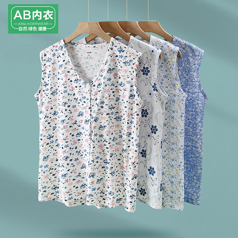 全棉老年汗衫 开衫 女 上衣奶奶背心女100纯棉无袖 AB内衣中老年大码