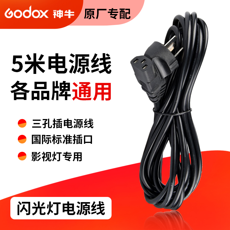 国标三相电源线 电脑品字插头 影室灯 摄影灯 摄影器材 金贝补光灯电缆线三孔 神牛5米闪光灯电源线