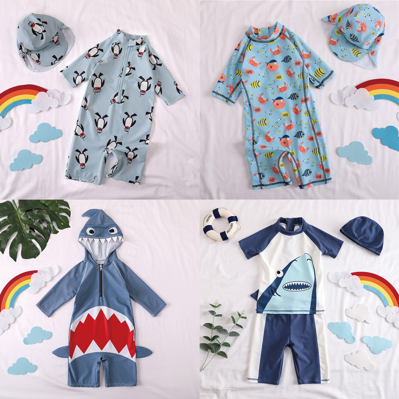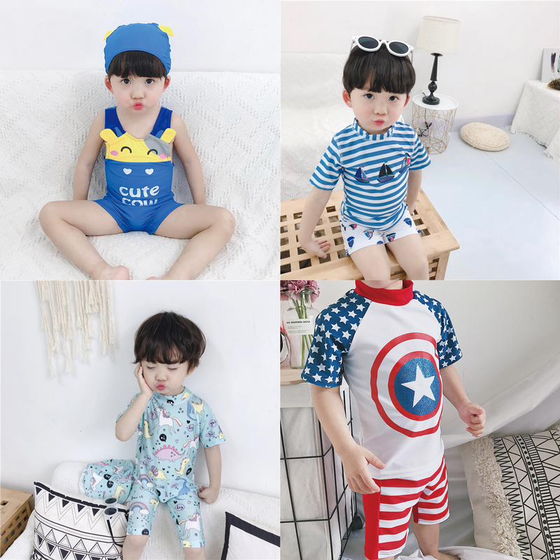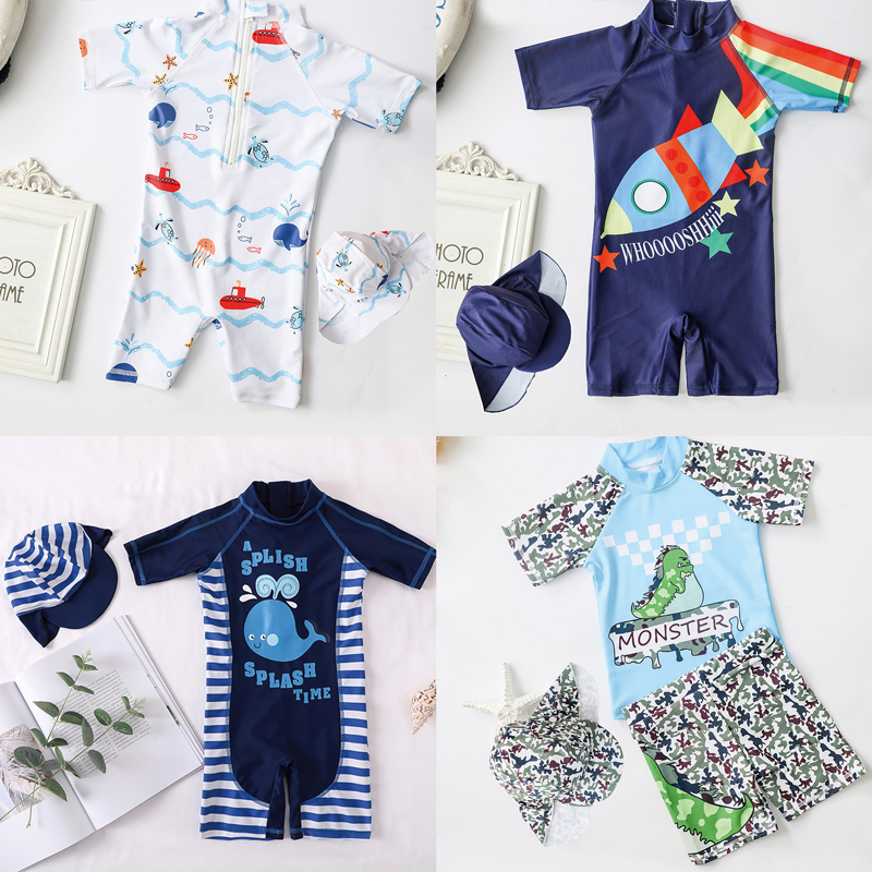 儿童泳衣男童小童连体男孩可爱宝宝婴儿防晒韩国游泳衣游泳裤 套装