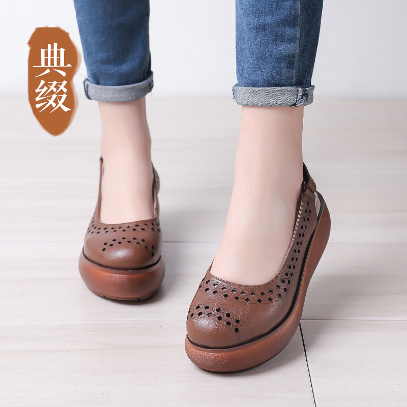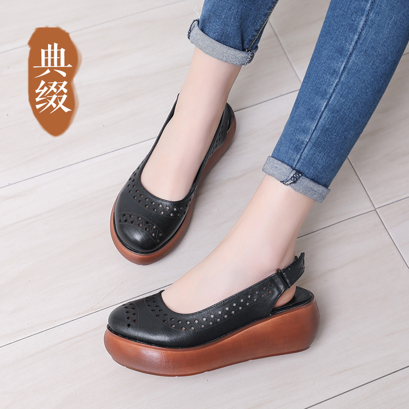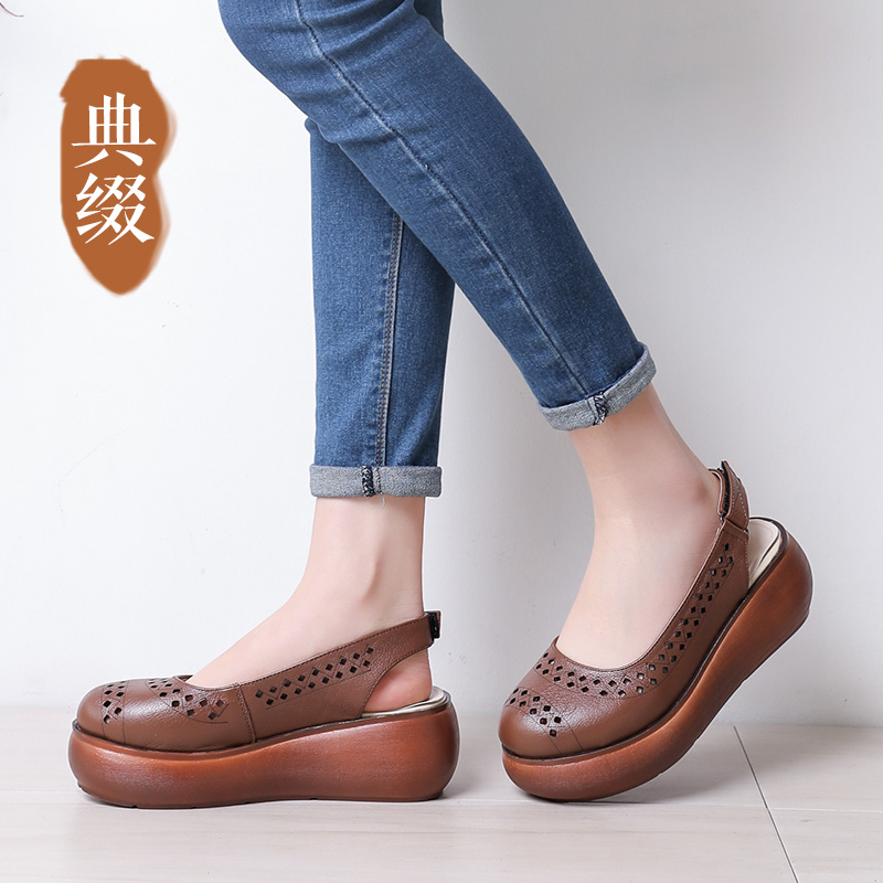 典缀凉鞋 魔术贴 女2025夏新厚底坡跟松糕跟坡跟防水台原创复古女鞋