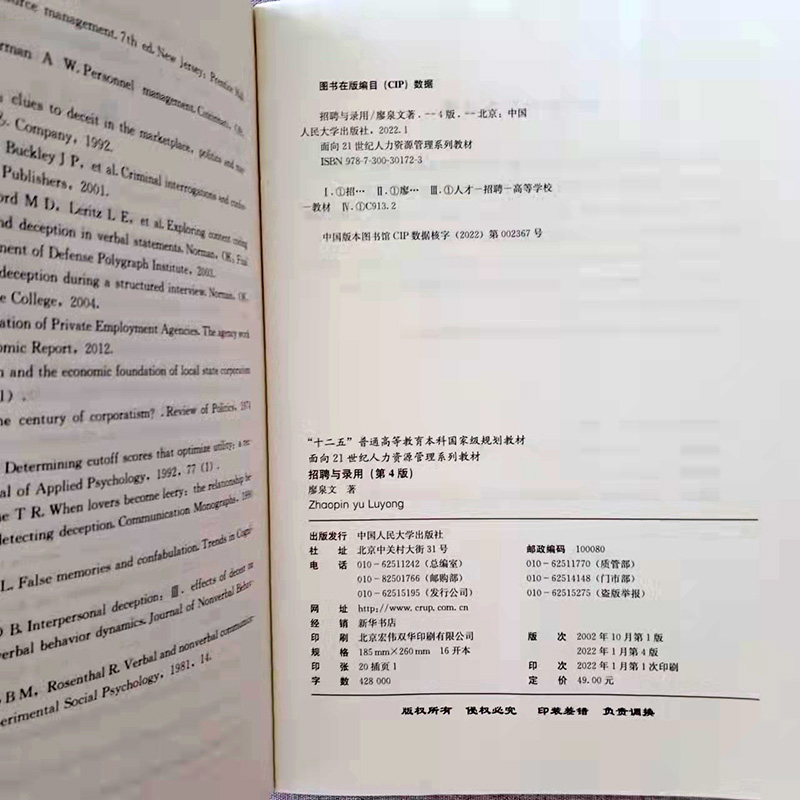 面向21世纪人力资源管理系列教材本科教材 第4版 廖泉文 中国人民大学出版 9787300301723 招聘与录用 社 第四版