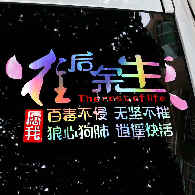 饰车贴纸创意文字定制七彩网红反光贴 装 往后余生车贴汽车个性 改装
