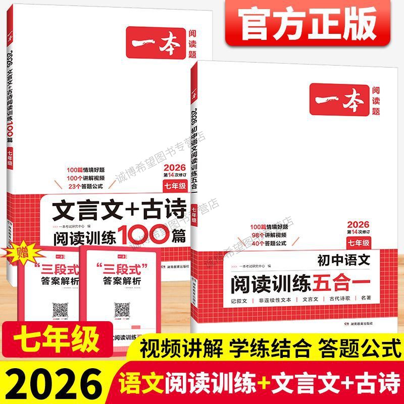 全国通用初中初一7年级上册下册语文现代文古诗文阅读练习题专项真题 文言文古诗语文阅读训练100篇五合一 2026版 一本七年级现代文