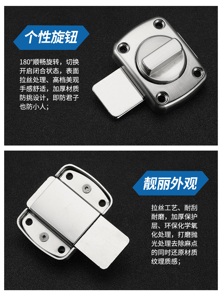 免打孔锁扣门栓卡扣防盗门不锈钢卫生间插销卧室安全反锁明装 门锁
