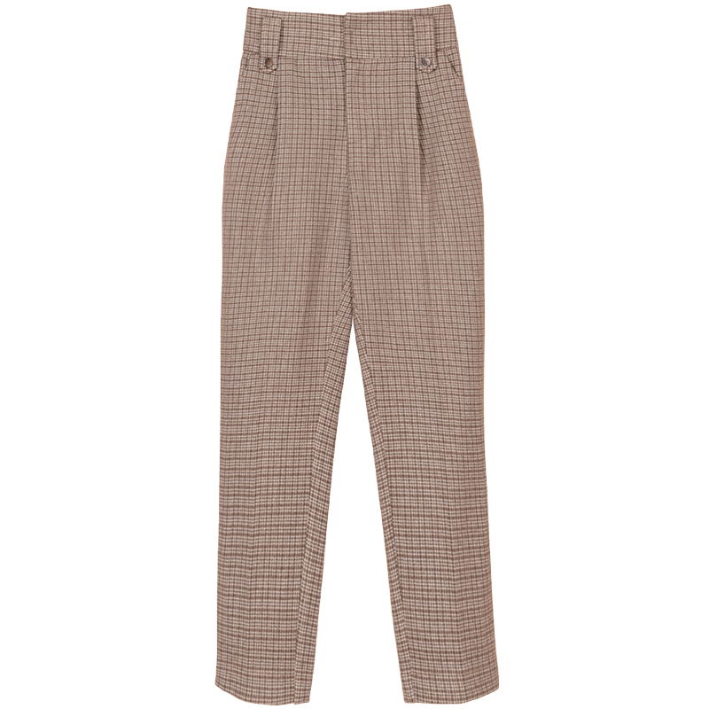 格子百搭高腰加厚萝卜裤 子毛呢小脚裤 女秋冬加绒宽松显瘦裤 哈伦裤