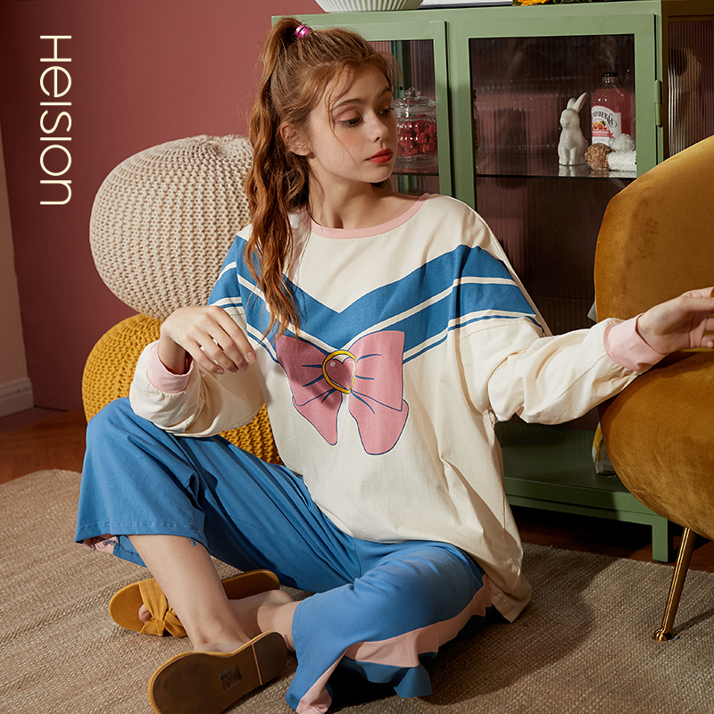 纯棉甜美可爱可外穿家居服两件套套装 Heision 海之宁睡衣少女秋装