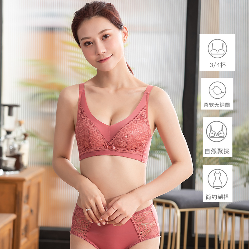 套装 女士内衣胸罩薄款 透气平胸小胸聚拢调整型文胸妈妈无钢圈大码