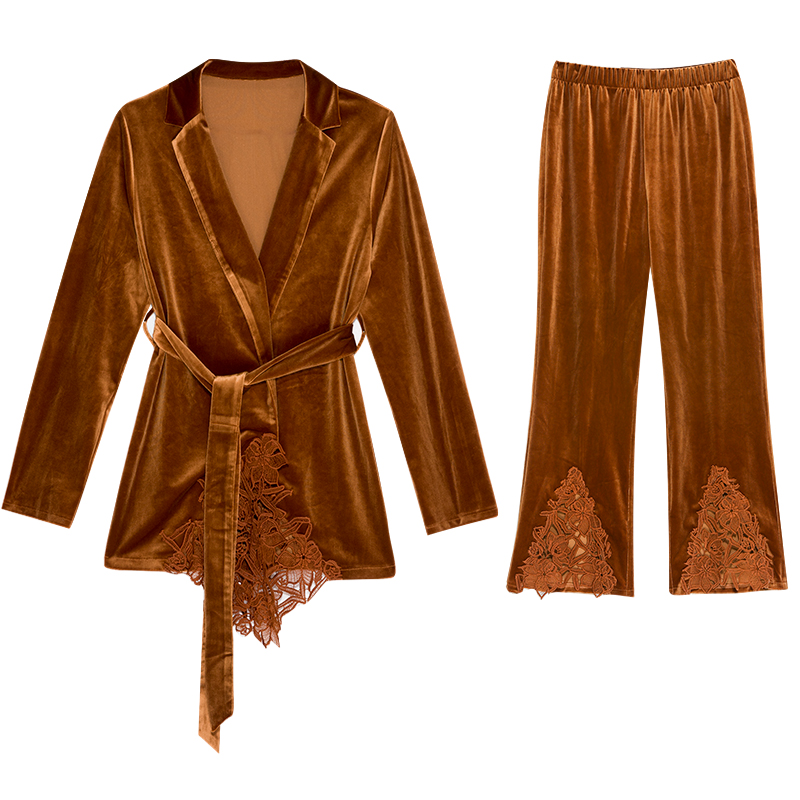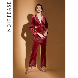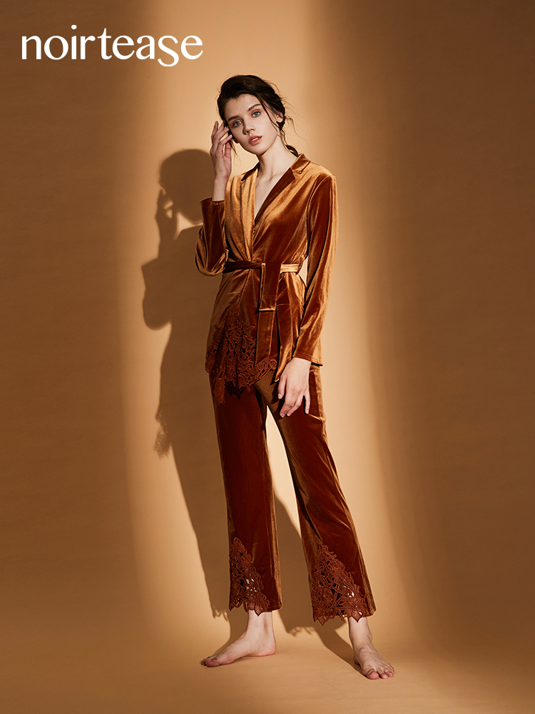 秋冬季 ubras流光家居服女士缎面睡衣长袖 男款 可外穿情侣套装 长裤