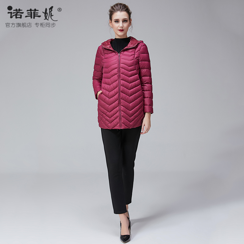 女士连帽保暖错格压胶轻薄羽绒服时尚 波司登25新款 便携 90鹅绒