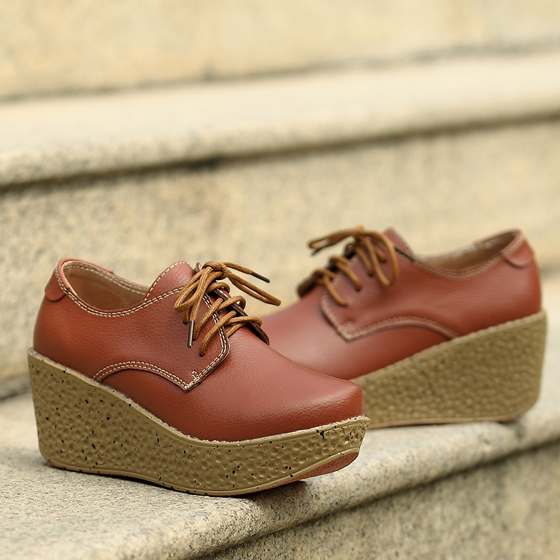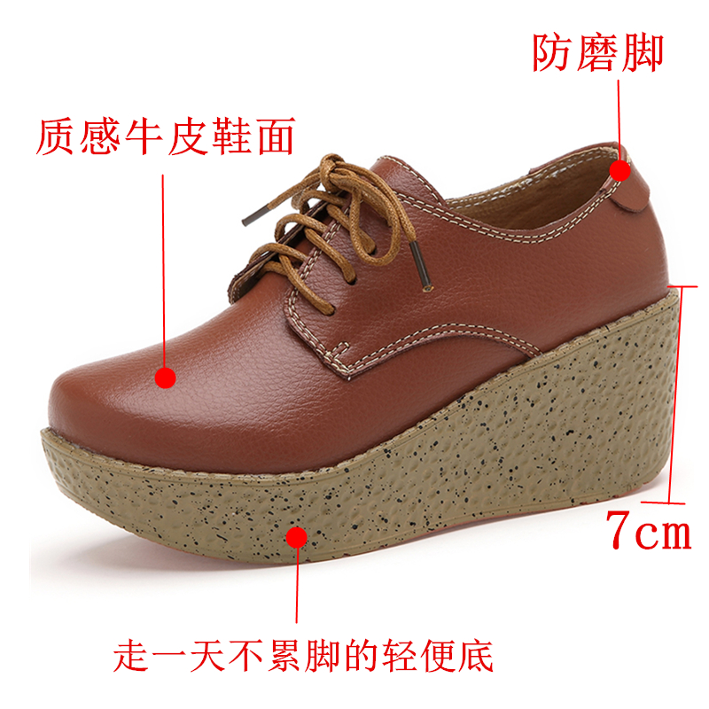 女坡跟防水台2025春秋款 增高单鞋 休闲松糕厚底高跟摇摇鞋 真皮女鞋