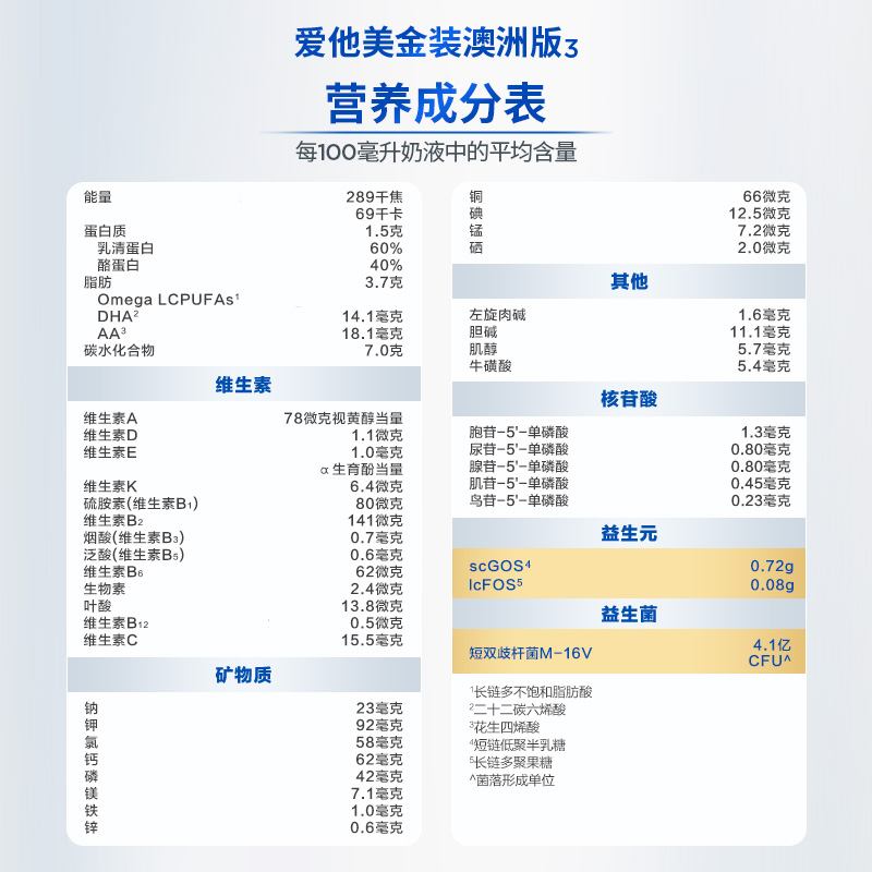 6个月900g 新西兰Aptamil爱他美进口婴幼儿奶粉1段0 3罐 自营