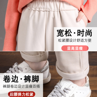 高级宽松bf慵懒垂感直筒加绒休闲阔腿裤 2025新款 子女春秋季 糯米裤