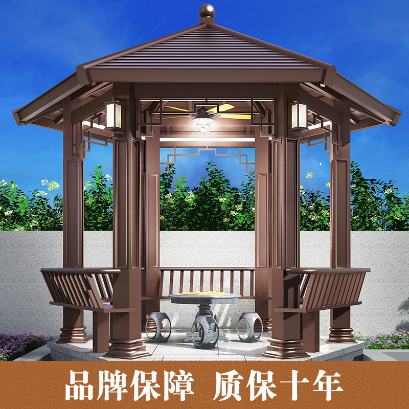光标户外凉亭铝合金中式 四角亭小院仿古六角茶亭别墅庭院木屋亭子