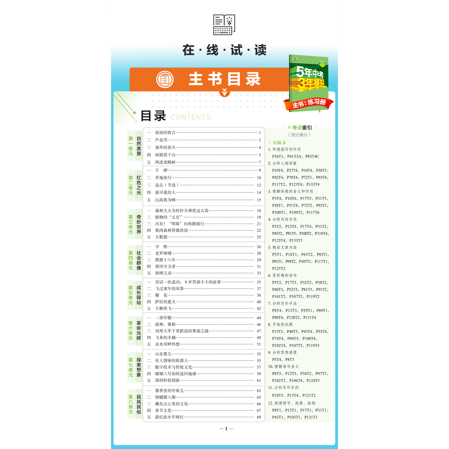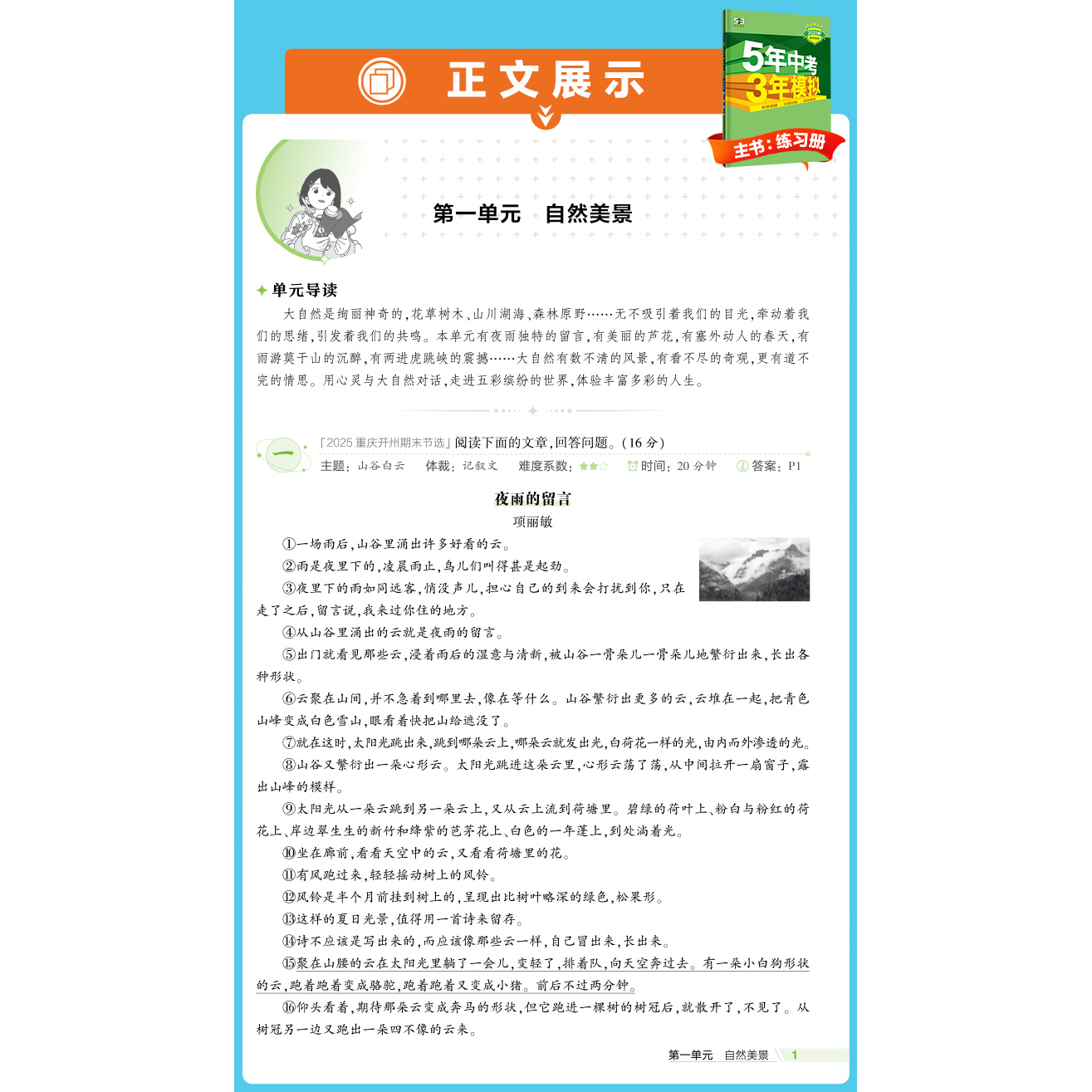 5年中考3年模拟同步阅读训练现代文答题技巧五三阅读提优练习册曲一线 现代文阅读六年级人教部编版 2025版 语文课外现代文