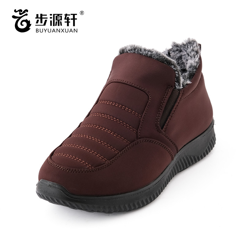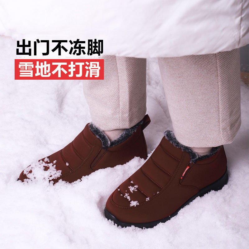 软底休闲中老年人加绒高帮皮面妈妈鞋 足力健旗舰店2024年冬季 新款