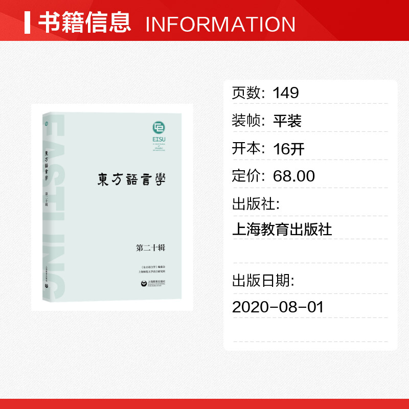 书籍 语言-汉语中华文化与传播中国传统文化书籍新华书店正版 东方语言学 第二十辑