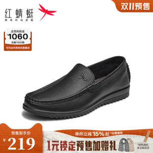 皮鞋 子舒适平底中年爸爸鞋 秋季 商务真皮软底鞋 休闲男鞋 红蜻蜓男士