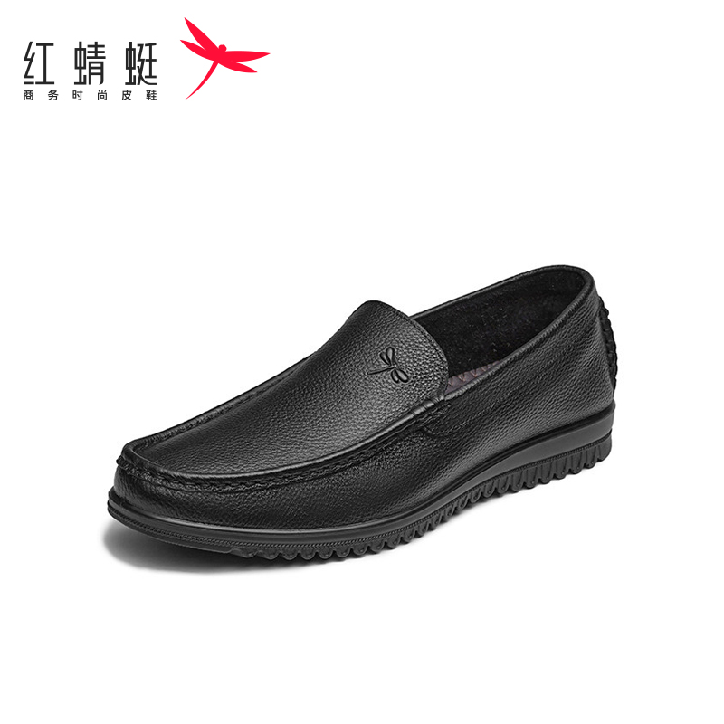 皮鞋 鞋 一脚蹬男鞋 大码 子 羊皮休闲舒适中老年人男款 红蜻蜓爸爸男士