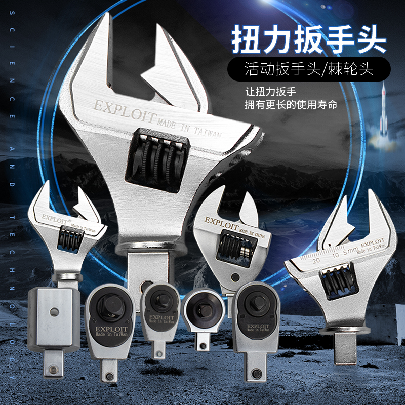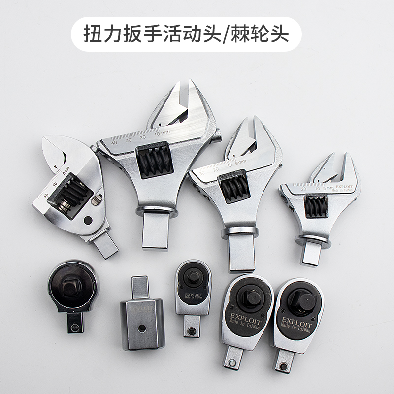 开拓台湾制造可换头扭力扳手棘轮头转接开口梅花活动头插件替换头