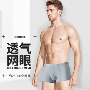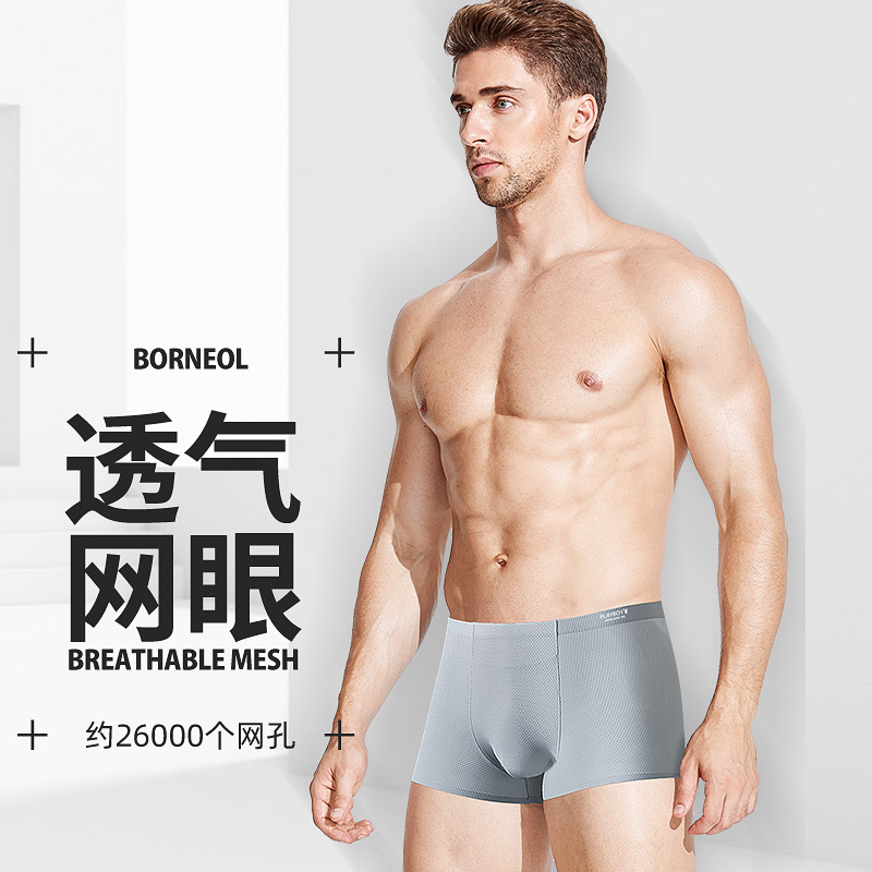 内裤 透气网眼底裤 男冰丝无痕平角裤 四角薄款 衩 头夏季 花花公子男士