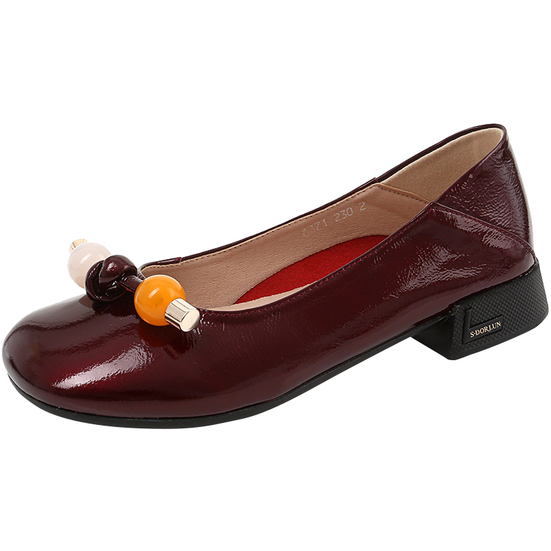 瓢鞋 方扣红色单鞋 百思图25秋新款 粗跟浅口女平底婚鞋 丝绒玫瑰