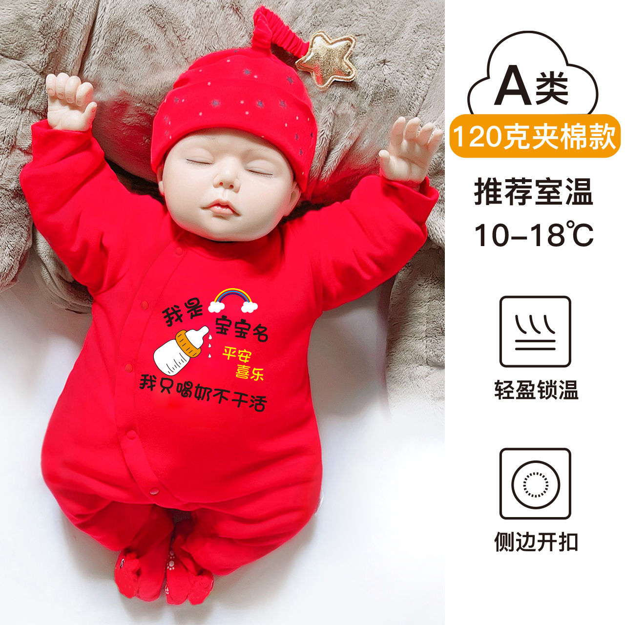 新生儿定制名字满月100天百岁宴男宝宝女婴儿秋冬连体衣拍照0 3月