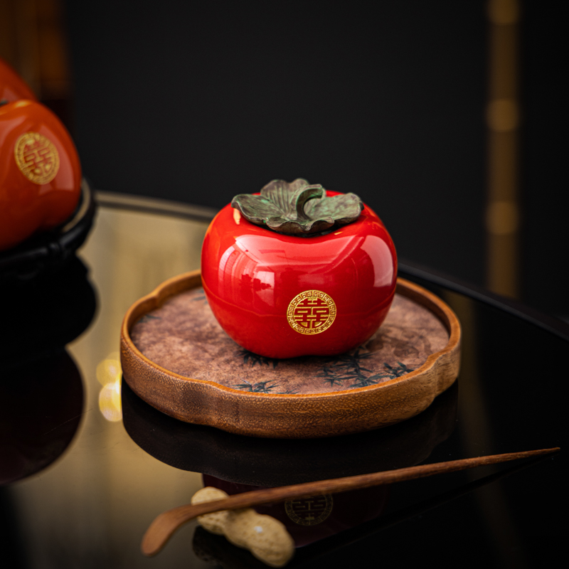 缘宿柿柿如意柿子陶瓷茶叶罐小号婚庆伴手礼喜糖罐结婚定制logo