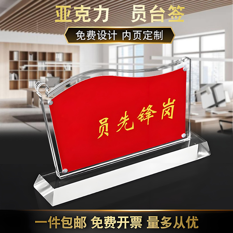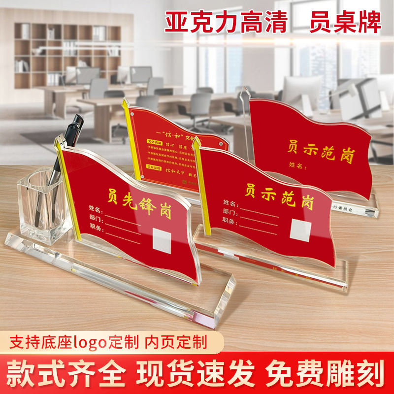 亚克力党员先锋示范岗台卡党员先锋岗桌牌强磁台签党员牌座位牌水晶展示牌党员姓名牌座牌