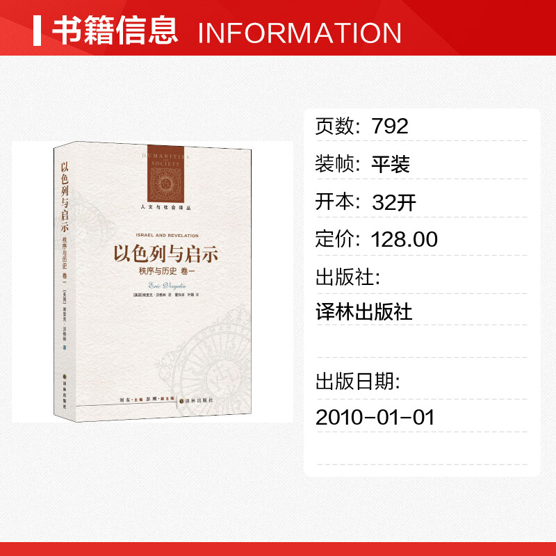 美 埃里克·沃格林 书籍 卷1 新华书店旗舰店文轩官网 正版 以色列与启示 社 秩序与历史 译林出版