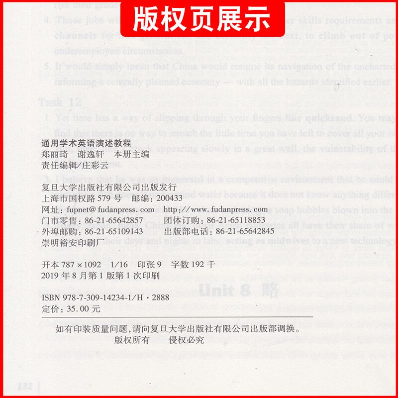 复旦大学出版 蔡基刚 社9787309142341 通用学术英语系列 通用学术英语演述教程