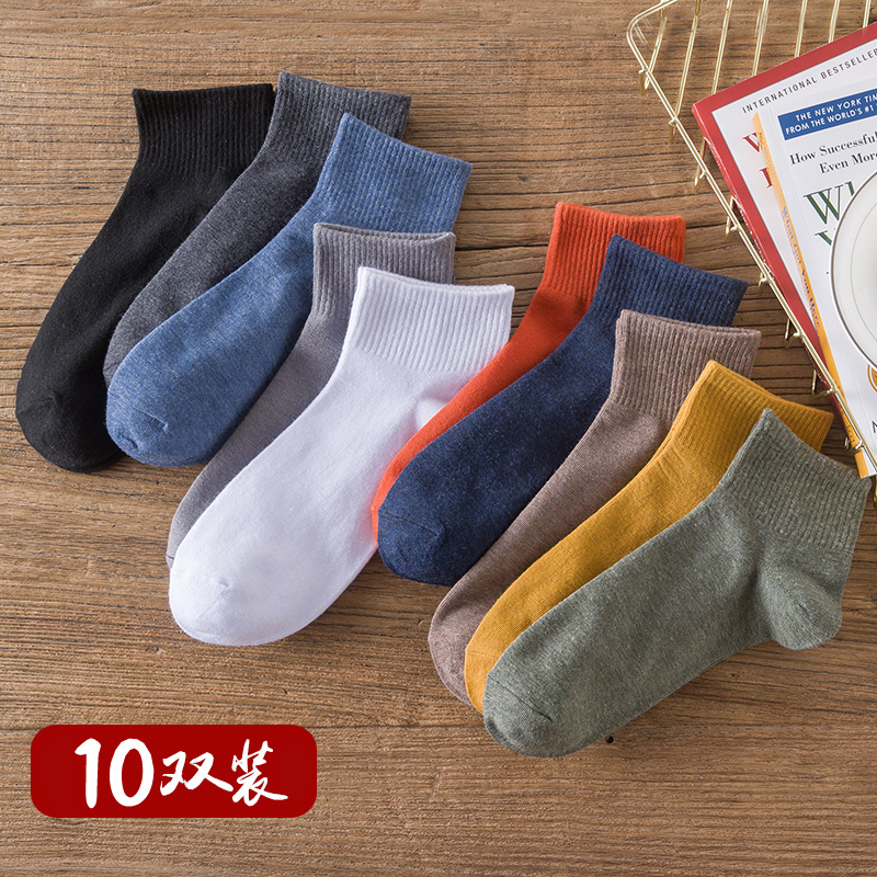防臭吸汗男袜男生运动棉袜潮 船袜男款 白色袜子男短袜秋冬薄款 男士