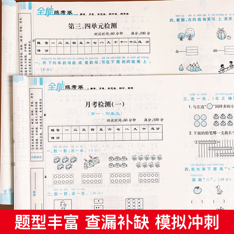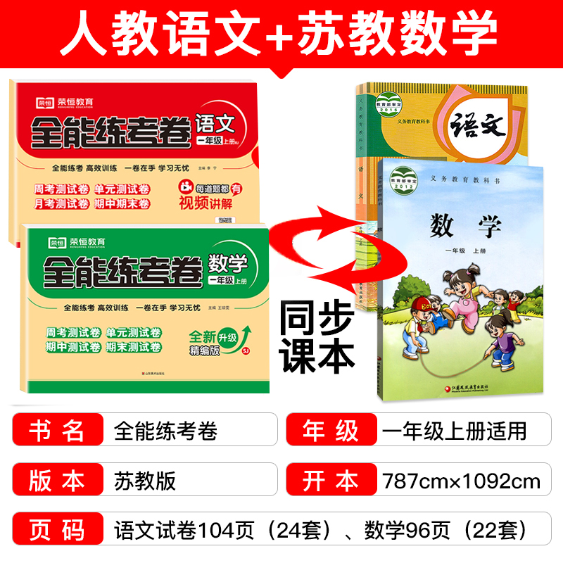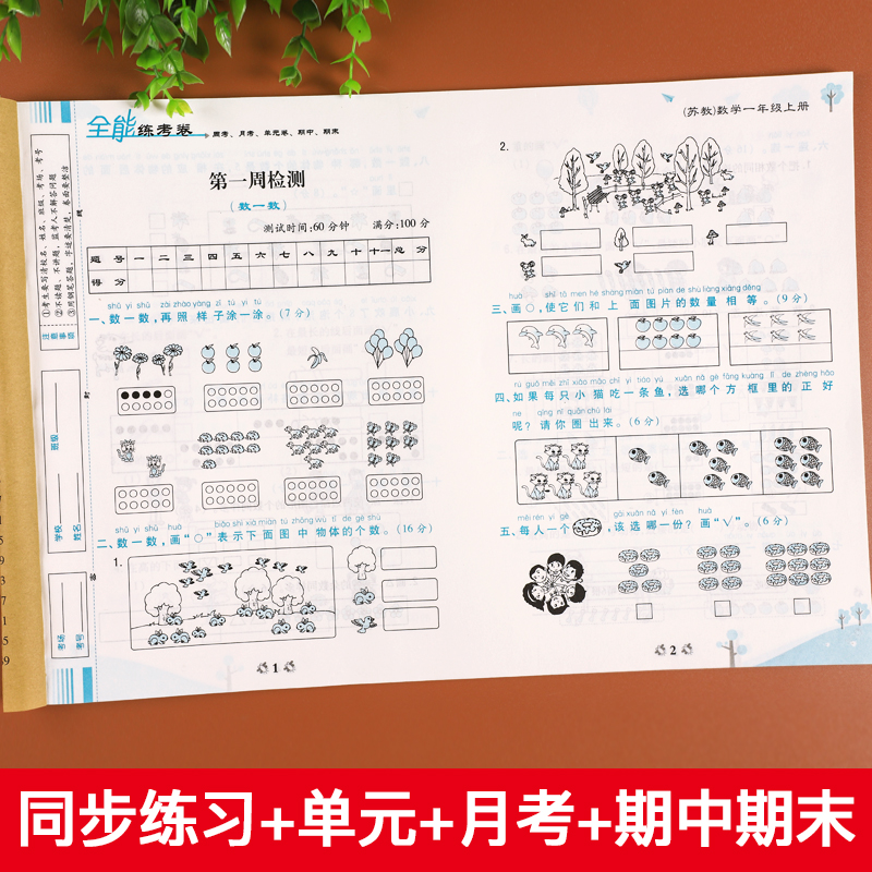 一年级试卷测试卷 一年级上册试卷 语文人教RJ共2本一年级上册同步练习册题全能练考卷期中期末冲刺100分 教材书 全套数学苏教版