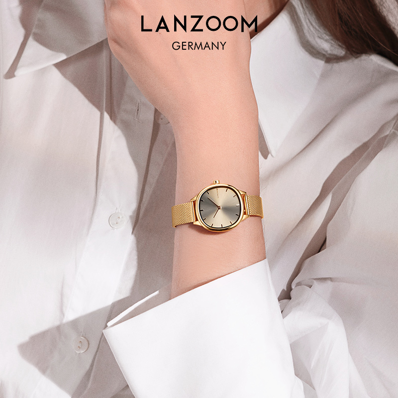 德国LANZOOM蓝族莫兰迪小金表女款 手表女生轻奢小众情人节礼物