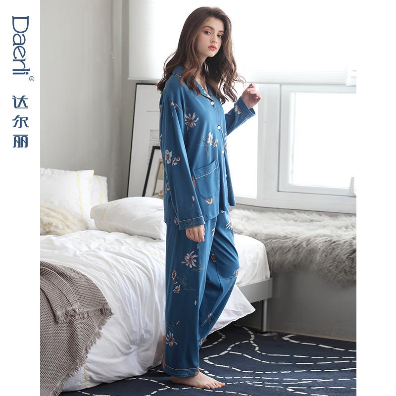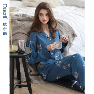 全棉家居服休闲套装 曼系男士 甜美时尚 宽松开衫 纯棉睡衣女春秋时尚