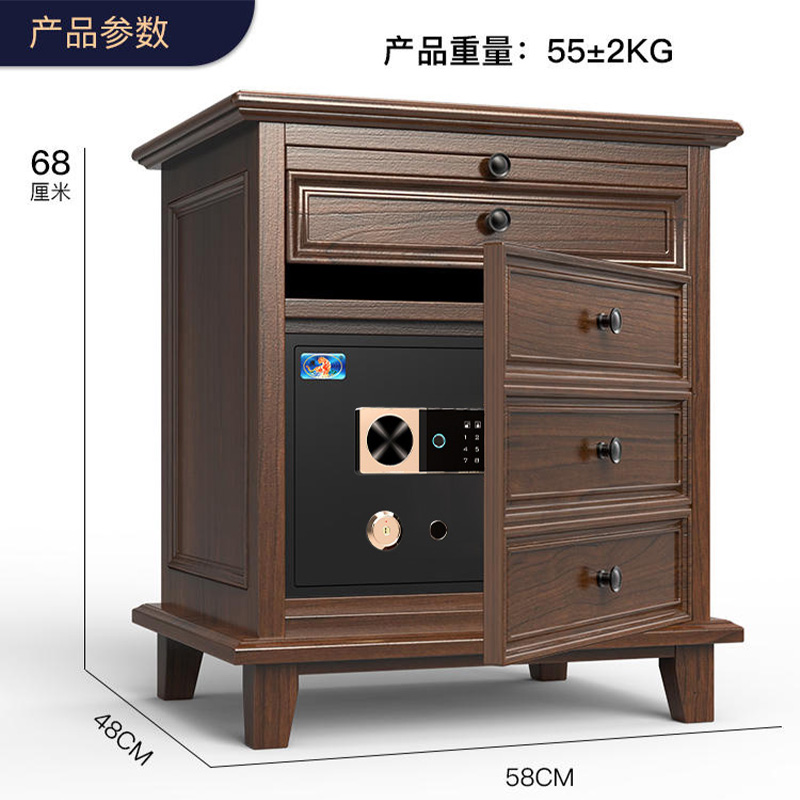 虎牌美式 防盗68cm高CSP标准 实木隐形卧室床头柜保险柜家用小型100斤指纹一体智能指纹全钢保险箱用2025新款