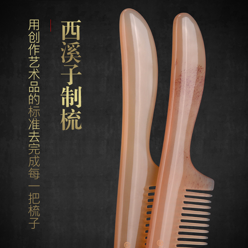 天然密齿羊角梳子女士专用长发礼品定制刻字牛角梳男士 家用木梳