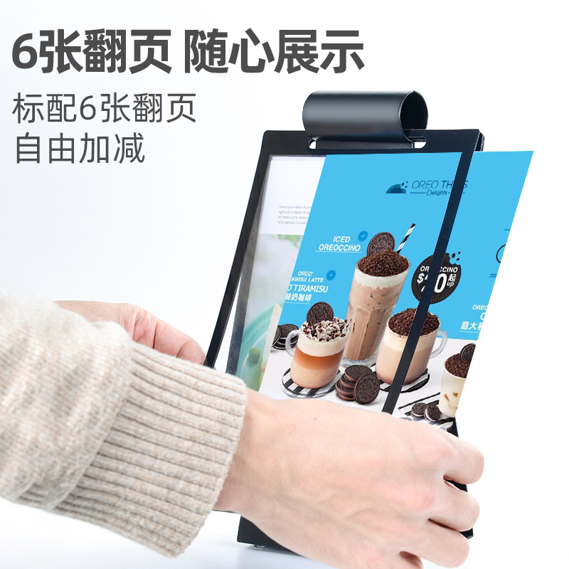 秀可 铁质翻页台卡pvc菜单前台桌面展示牌活页台卡架点菜牌a4桌牌a5宣传资料架子酒店客房餐厅餐牌奶茶店介绍
